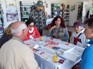 Вихідний виявився цікавим і насиченим. В цей день до бібліотеки завітали чудові люди - дружна сімя Вельганів. Справа в тім, що Вельган-молодший, Богдан Павлович, разом з друзями створили настільну гру "Світ громад", котра напередодні створення громад на наших теренах актуальна і достатньо практична, як на гру. І ось шестеро абсолютно дорослих людей сидять за столом і на ігровому полі вирішують абсолютно серйозні проблеми громади. Цікаво, повчально весело. Велике спасибі нашим гостям за з користю проведений час.